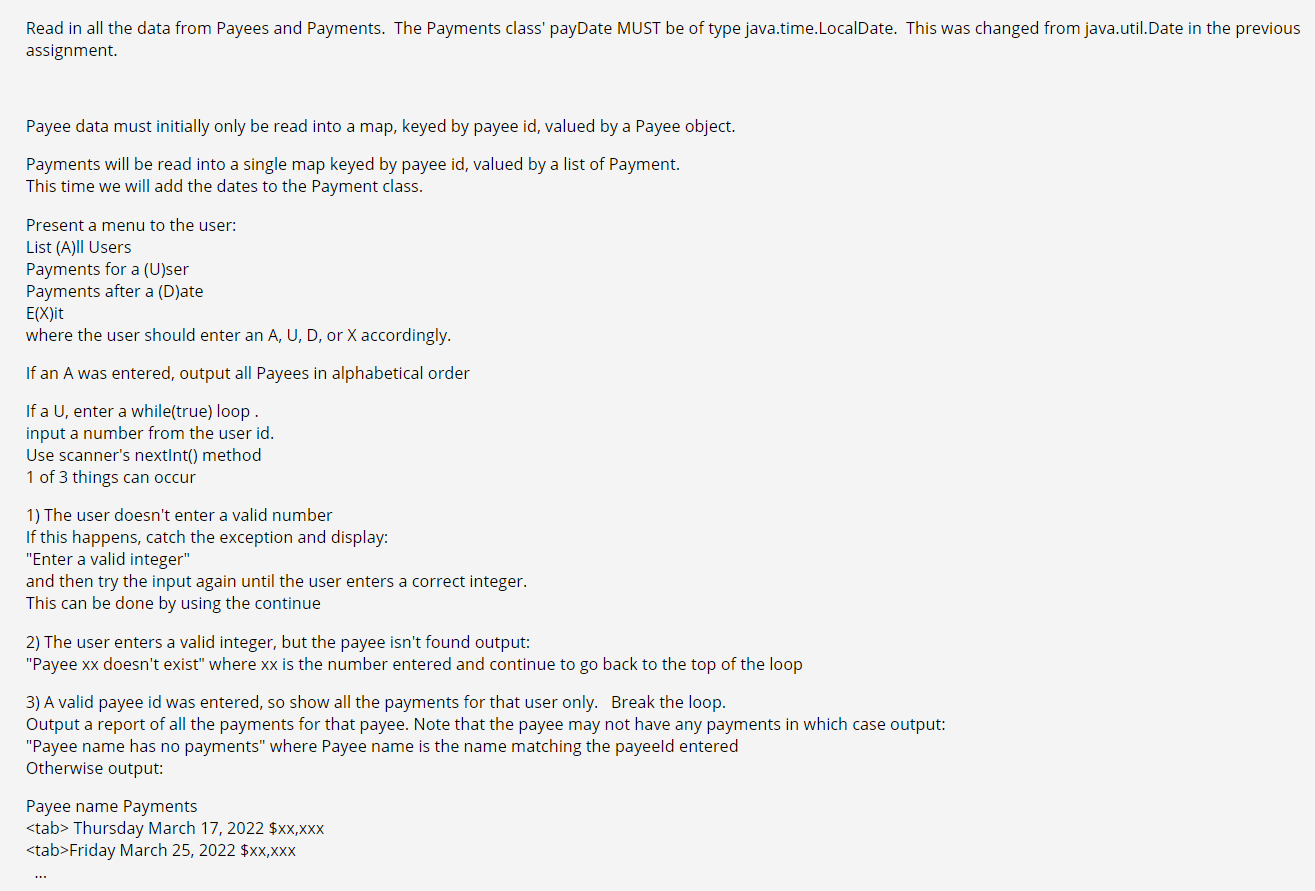 Read In All The Data From Payees And Payments The Chegg Com